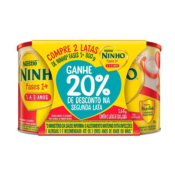 Kit Fórmula Infantil Ninho Fases 1+ com 2 unidades de 800gO que é o Ninho Fases 1+ Fómula infantil? Ninho Fases 1+ Fómula Infantil possui uma fórmula especialmente voltada para as crianças da primeira infância.R$ 89,99